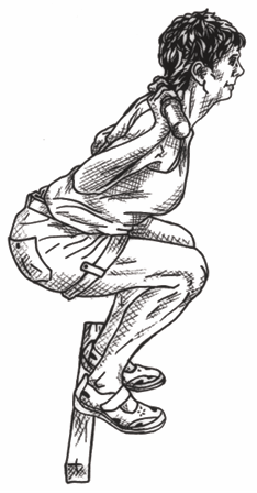 Squat Station: This is progressed from bodyweight only to slowly adding small amounts of weight, and then progressing to heavier weights when ready.